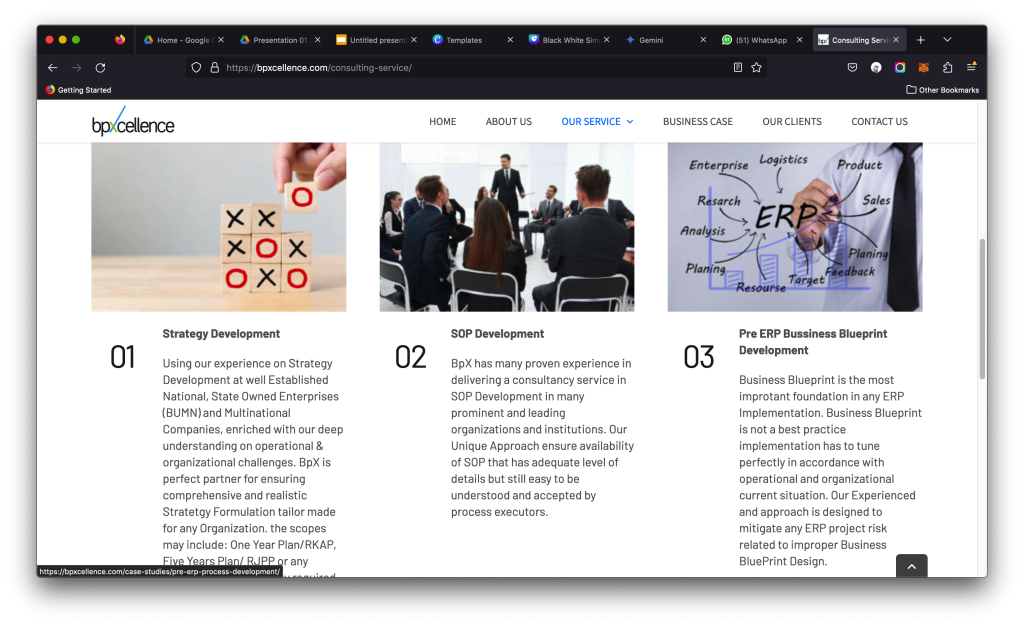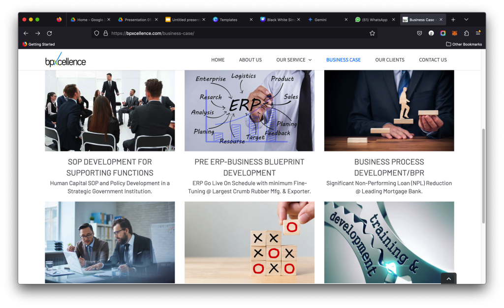 Content and user flow are structured to guide visitors from problem awareness to solution discovery. Clear service breakdowns, strong messaging, and strategic calls-to-action position BpXcellence as a reliable partner for companies looking to reduce inefficiencies, standardize processes, and drive measurable business results Built to support consultations and long-term engagements, the website functions as a conversion tool, turning interest into inquiries and inquiries into partnerships. It reinforces trust, authority, and professionalism while encouraging potential clients to take the next step toward operational excellence.