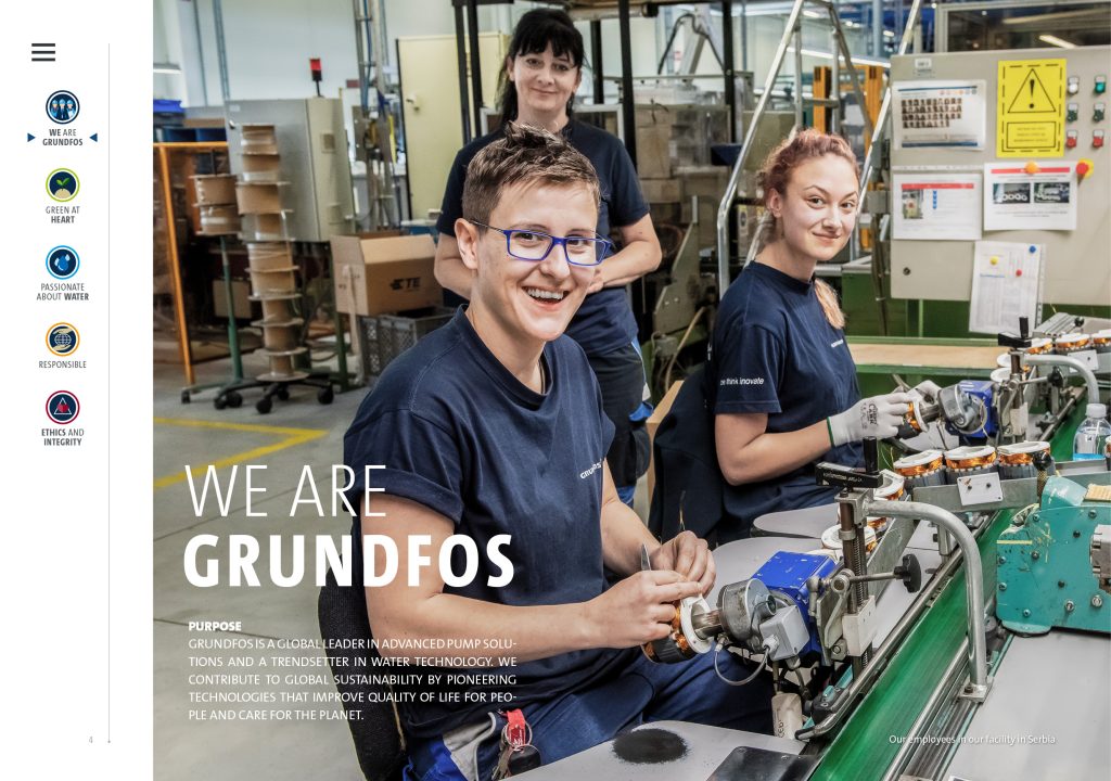 FOLLOWING THE STRONG reception of the 2017 Sustainability Report, Grundfos re-appointed Letter Case as its strategic partner to develop the 2018 Sustainability Report, reflecting a continued confidence in our ability to translate sustainability strategy into clear, credible executive communication.