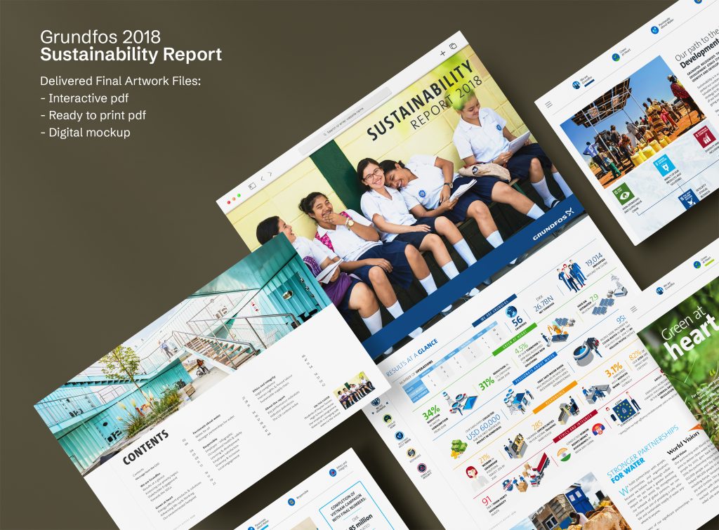 Designed for senior leadership, board members, and global stakeholders, the report presents complex ESG data and project insights within a structured, decision-oriented narrative. By combining clarity, consistency, and strategic storytelling across print and digital formats, the report strengthens Grundfos’ leadership position and supports informed governance, accountability, and long-term value creation.